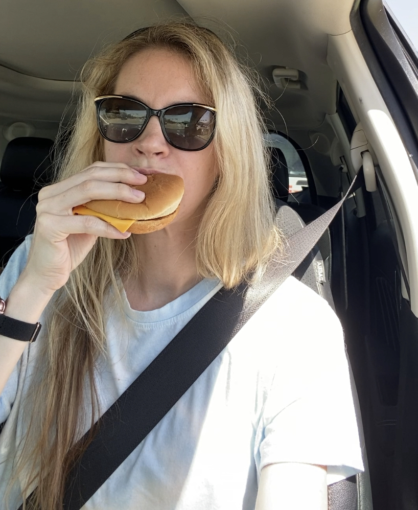 • Got another burger – look at that bite mark! My diet is consisting of mostly bad food but it has been nothing short of aaaamazing and I have loved every second of eating food without much of the pain! I bite into everything just for fun and relish every bite. I’ve been so hungry. I’ve actually had a couple of upset stomachs from eating too much!
